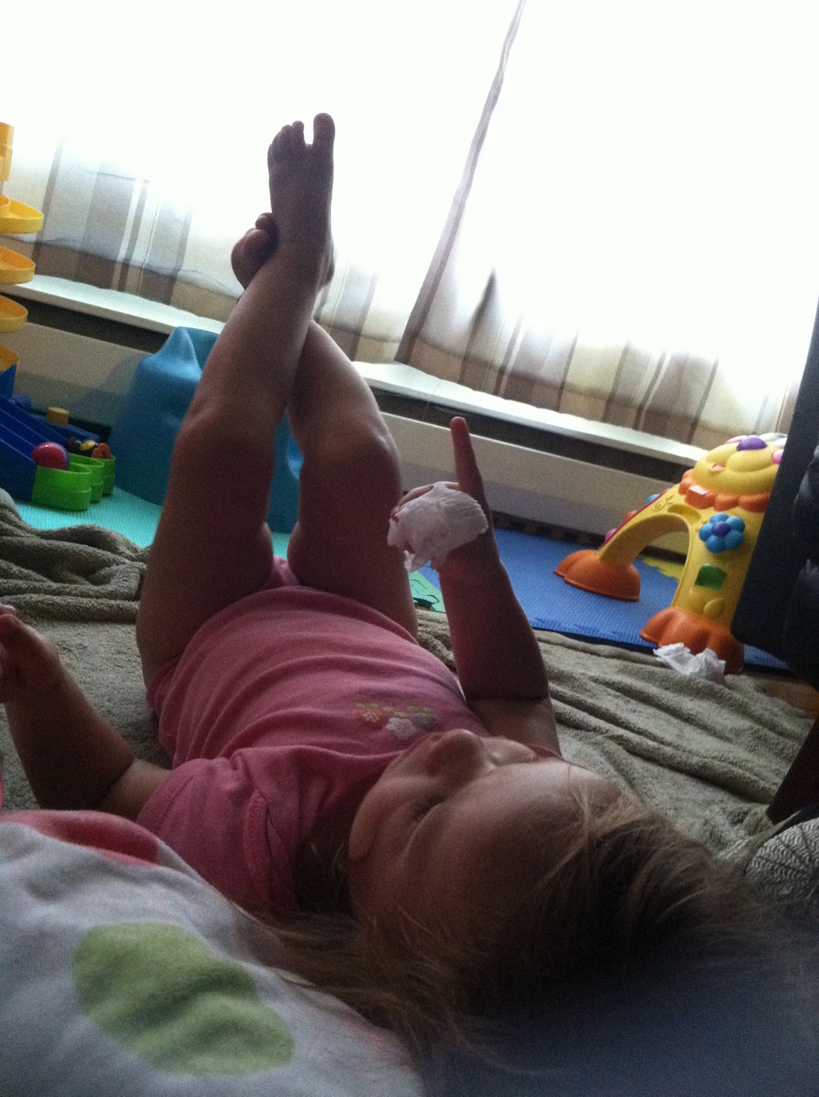 I'm not sure if its teeth, or boredom, or temperature, or crankiness, or what but Addyson sure does not like to nap or sleep in. She is up before 6, sometimes before 5, and if I'm lucky she will nap for a hour. Most day's she'll only nap for 45 minutes. To try to trick her into napping a little more today (since she only had a 30 minute nap) we build a fort full of blankets and pillows. The fort was and looked awesome, but didn't make her sleep for even a second. Hopefully tomorrow she'll want to sleep a little more.... hopefully....